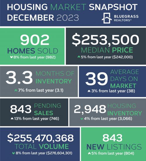 The real estate market in the Bluegrass region experienced a notable upturn in December, marked by a year-over-year increase in new listings for the first time since June 2022. The total number of properties entering the market saw a 5% rise, reaching 843 compared to 804 in the previous year. While December's total remained relatively low, this uptick suggests a potential improvement in housing inventory, providing buyers with a broader selection throughout the year.