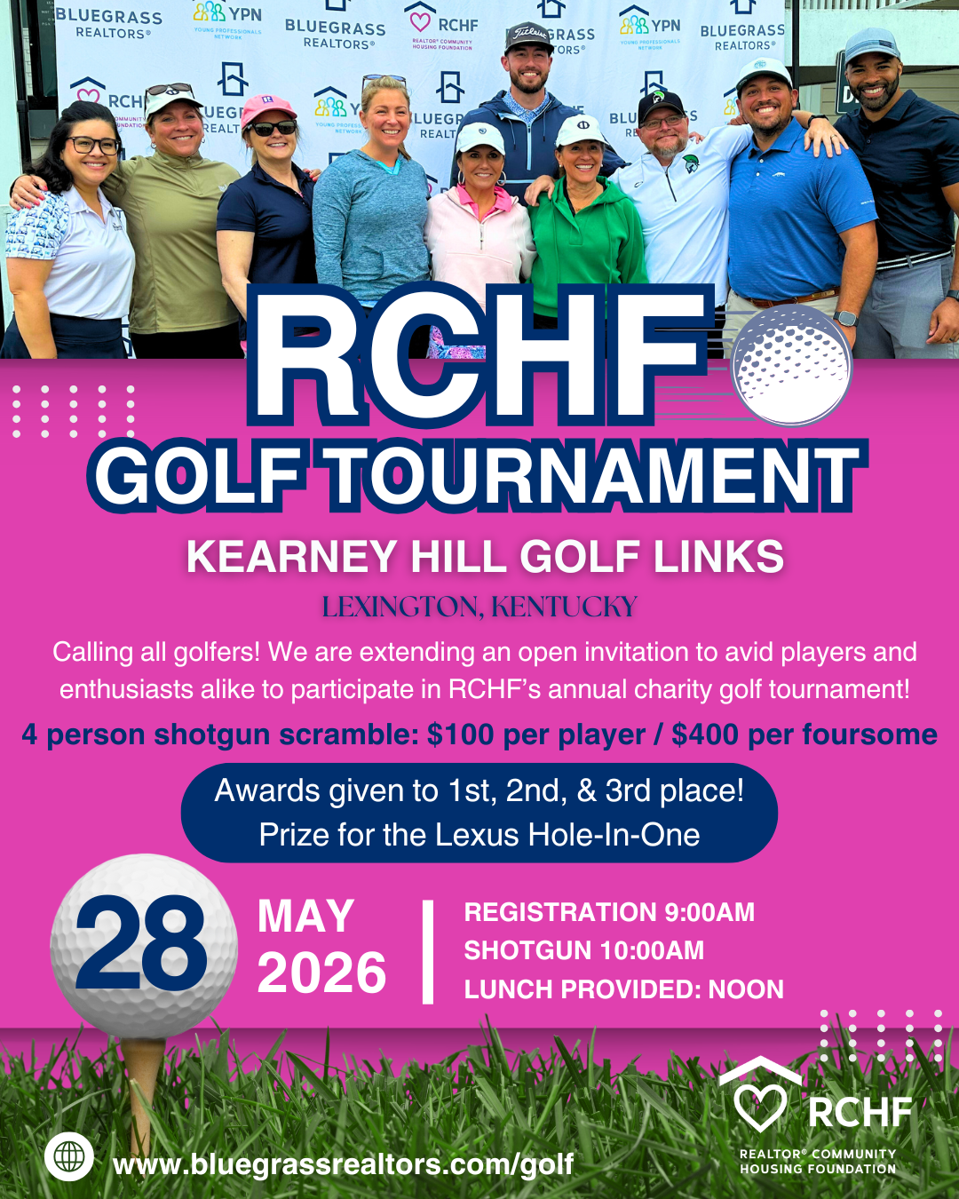 RCHF Charity Golf Tournament, Thursday, May 28, Kearney Hill Golf Links Registration opens: 9am, Shotgun start: 10am, Lunch: noon